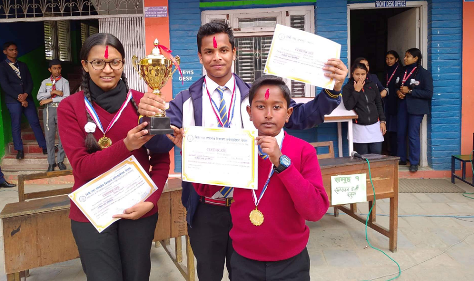 प्रतियोगितामा रेडरोज विद्यालयका कृपा अधिकारी, कृषा चौलागाईं, निष्चल अधिकारी द्धितीय भएका छन् । यस्तै जीएस निकेतनका सारा केसी, उकिसा अधिकारी र राजन खनाल तृतिय भएका छन् ।