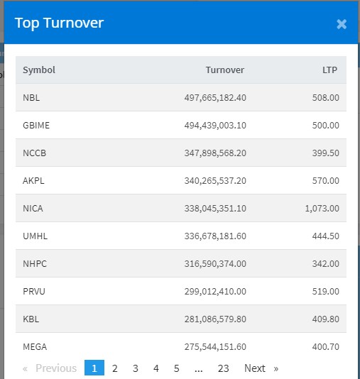 साथै नेपाल क्रेडिट एण्ड कमर्सियल बैंकको ३४ करोड ६५ लाख, अरुण काबेली पावरको ३३ करोड ९७ लाख र एनआईसी एशिया बैंकको ३३ करोड ७५ लाख भन्दा माथिको कारोबार भएको छ ।