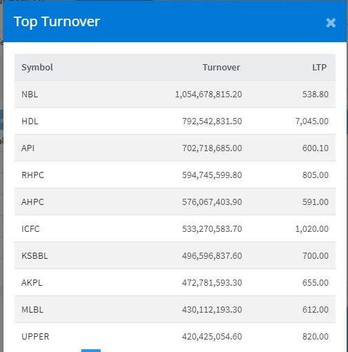 त्यस्तै दोस्रोमा हिमालयन डिस्टिलरीको ७९ करोड २५ लाख, अपि पावर कम्पनीको ७० करोड २७ लाख, रिडि हाइड्रोपावरको ५९ करोड ४७ लाख र अरुण भ्याली हाइड्रोपावरको ५७ करोड ६० लाख भन्दा माथिको कारोबार भएको छ ।