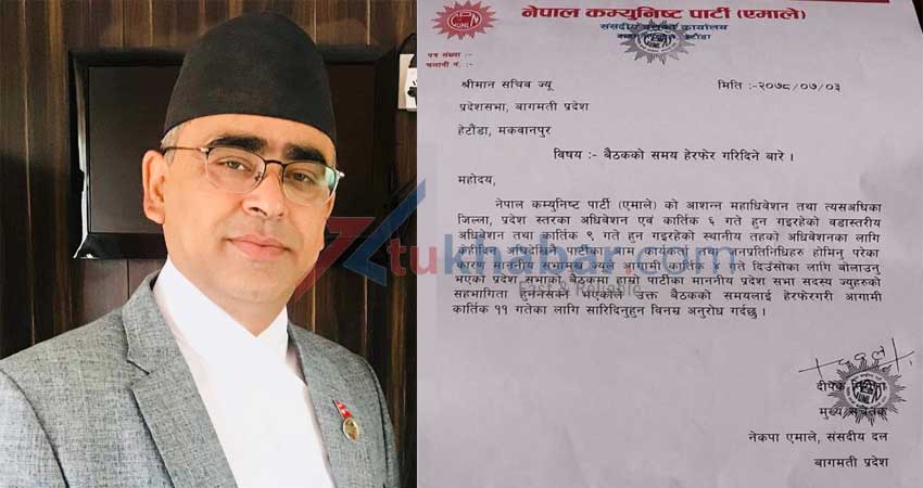 एमालेको नाटकः कात्तिक ४ गतेको प्रदेशसभा बैठक टार्न पत्र