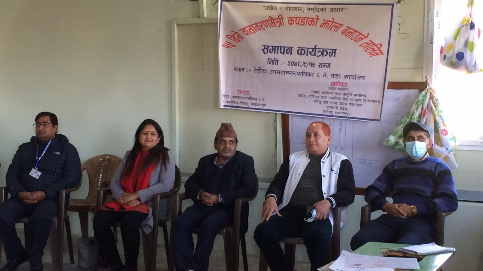 हेटौंडामा वातावरण मैत्री कपडाको झोला बनाउने तालिम समापन
