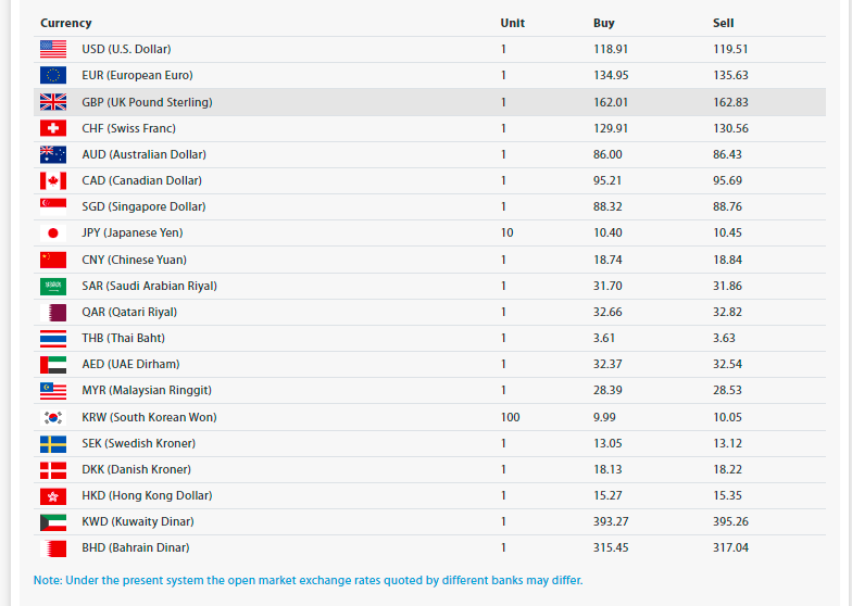 काठमाडौँ । शुक्रबारका लागि विदेशी मुद्राको विनिमयदर सार्वजनिक भएको छ । राष्ट्रबैंकले आजको अमेरिकी डलर एकको खरिददर अधिकतम ११८ रुपैयाँ ९१ पैसा र बिक्रीदर ११९ रुपैयाँ ५१ पैसा कायम गरेको छ । त्यस्तै युरोपियन युरो आज एकको खरिददर १३४ रुपैयाँ ९५ पैसा र बिक्रीदर १३५ रुपैयाँ ६३ पैसा छ । युके पाउन्ड स्टलिङ एकको खरिददर १६२ रुपैयाँ ०१ पैसा र बिक्रीदर १६२ रुपैयाँ ८३ पैसा कायम छ ।