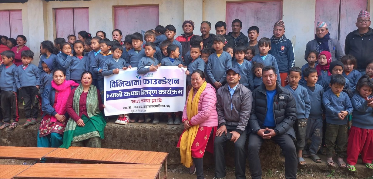 विकेशलालद्वारा सातकन्याका ७० विद्यार्थीलाई न्यानो कपडा सहयोग