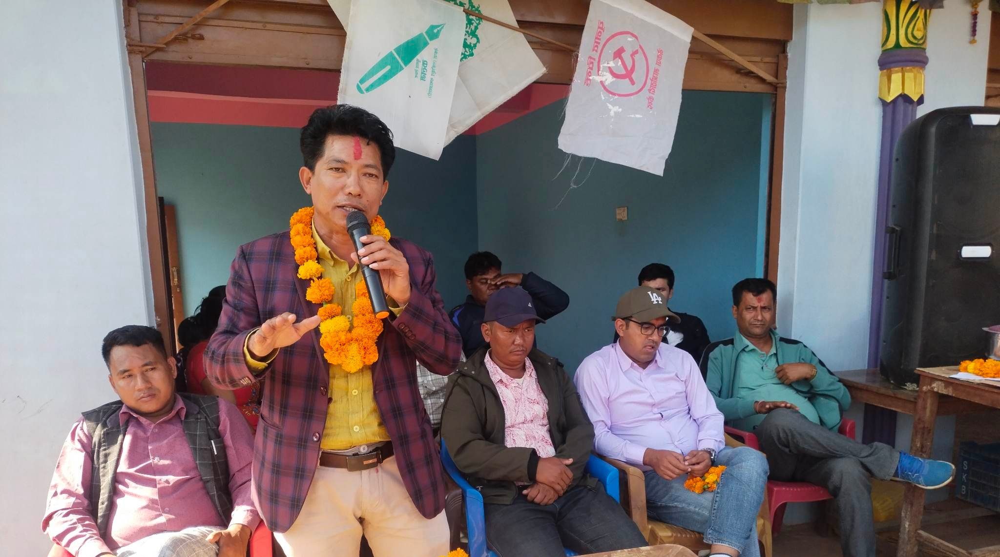 शनिबार जिल्लाको बकैया गाउँपालिका वडा नम्वर ८ शिखरपुरमा लोकतान्त्रिक बामगठबन्धनको चुनाव प्रचार–प्रसार कार्यालय उद्धघाटन कार्यक्रममा बोल्दै उनले आफु यहि जन्मेर हुर्कि आएको मान्छे हुँ भन्दै यहि ठाउँको विकास गर्न सदैब लागिपर्ने बताए ।