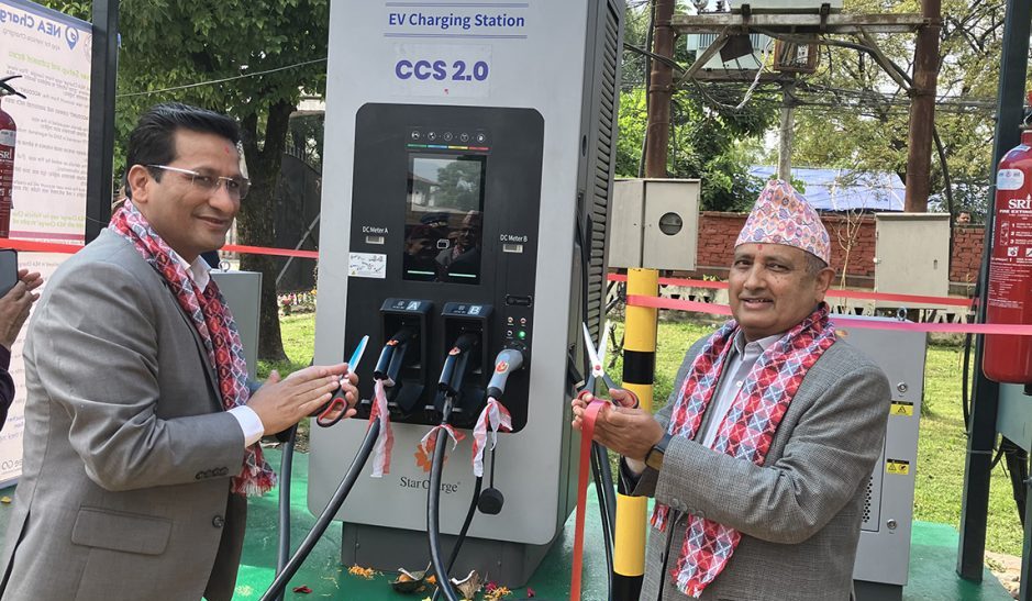 ऊर्जा, जलस्रोत तथा सिंचाइमन्त्री शक्तिबहादुर बस्नेत र सचिव दिनेशकुमार घिमिरेले संयुक्त रुपमा काठमाडौंको नेपाल पुलिस क्लब भृकुटीमण्डपमा स्थापना गरिएको फास्ट चार्जिङ स्टेसनको उद्घाटन गरेका हुन् ।