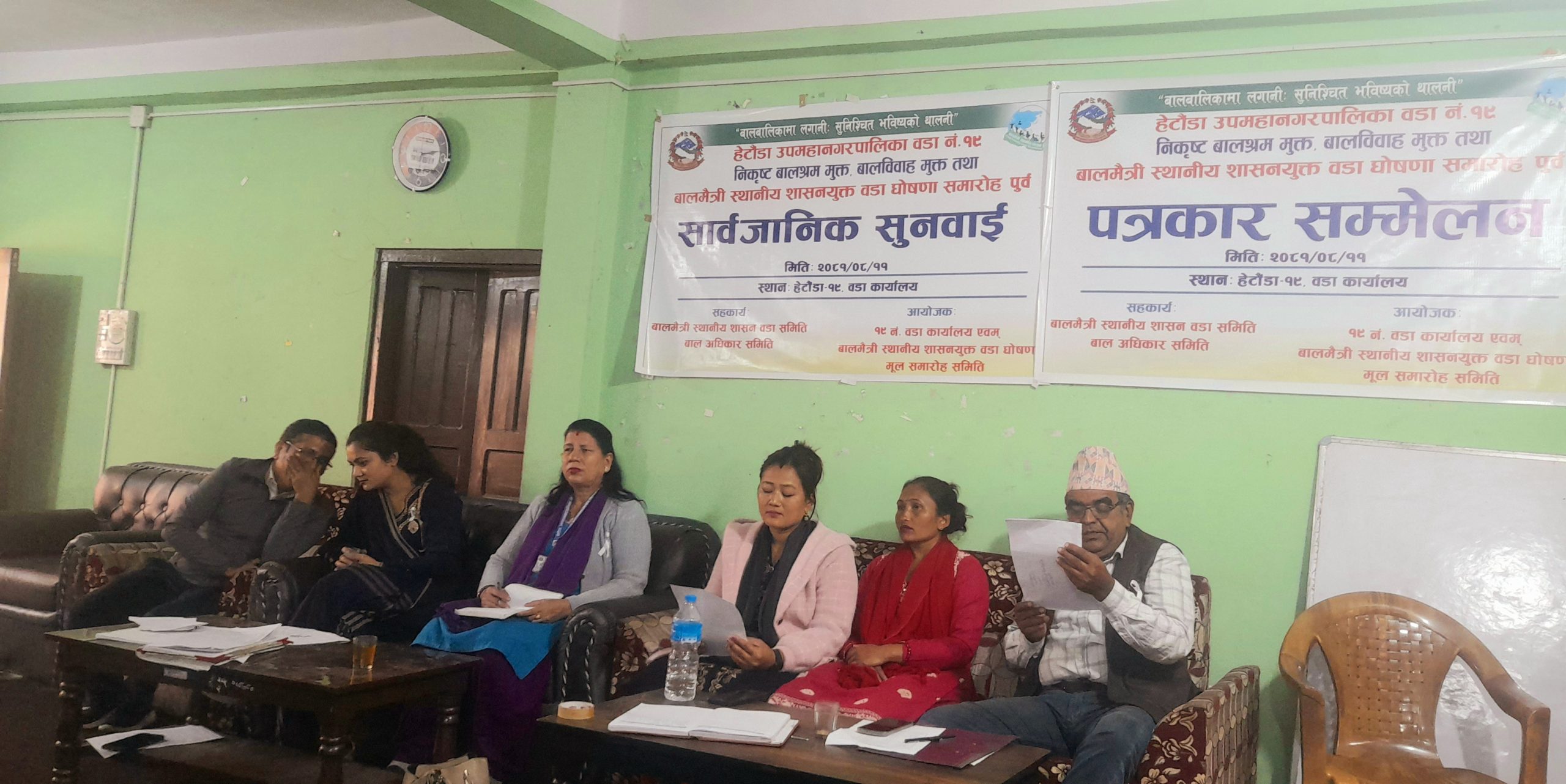 हेटौंडा–१९ लाई बालमैत्री वडा घोषणा गरिँदै