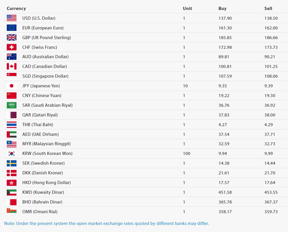 त्यसैगरी एक मलेसियन रिंगिटको खरीददर ३२.५९ रुपैयाँ र बिक्रीदर ३२.७३ रुपैयाँ, १०० दक्षिण कोरियन वनको खरीददर ९.९४ रुपैयाँ र बिक्रीदर ९.९९ रुपैयाँ र एक कुवेती दिनारको खरीददर ४५१.५८ रुपैयाँ र बिक्रीदर ४५३.५५ रुपैयाँ निर्धारण भएको छ।