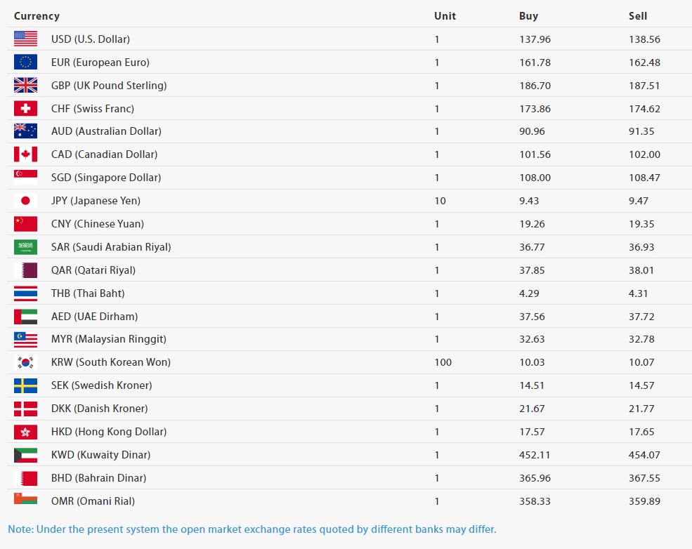 यस दिन एक अष्ट्रेलियन डलरको खरीददर ९०.९६ रुपैयाँ र बिक्रीदर ९१.३५ रुपैयाँ, १० जापानिज यनको खरीददर ९.४३ रुपैयाँ र बिक्रीदर ९.४७ रुपैयाँ र १०० दक्षिण कोरियन वनको खरीददर १०.०३ रुपैयाँ र बिक्रीदर १०.०७ रुपैयाँ तोकिएको छ।