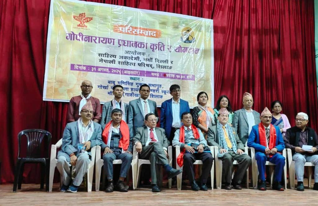भारत । साहित्य एकेडेमी, नयाँ दिल्ली र नेपाली साहित्य परिषद, सिलोङको संयुक्त आयोजनामा साहित्यकार गोपीनारायण प्रधानका कृति तथा योगदानमा आधारित विचार गोष्ठी गाडीखाना, सिलोङमा सम्पन्न भएको छ।