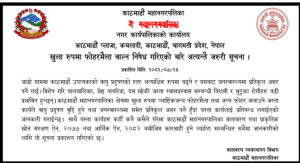 काठमाडौं महानगरपालिकाद्वारा खुला रुपमा फोहोर बाल्न निषेध