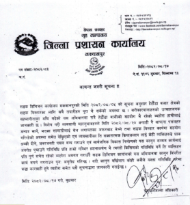 जिल्ला प्रशासन कार्यालयले सो क्षेत्रमा बल प्रयोग, अवरोध, भीडभाड, तोडफोड वा भीड जम्मा गराई काम प्रभावित पारेमा कोही पनि कानूनी कारबाहीबाट उम्कन नपाइने चेतावनी दिएको छ। प्रशासनले सहजरूपमा काम सम्पन्न गर्न सबै स्थानीयवासी, संघ-संस्था र सर्वसाधारणको सहयोगको समेत अपील गरेको छ।सूचना प्रमुख जिल्ला अधिकारी बसन्त अधिकारीले जारी गरेका हुन्।