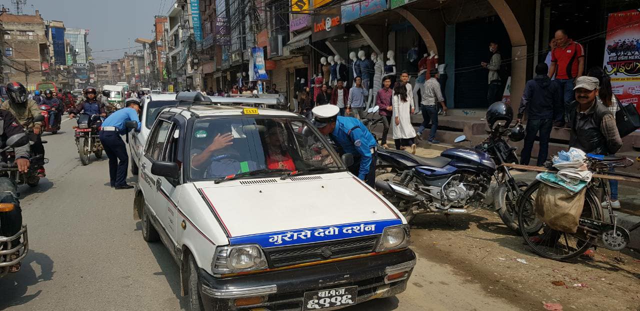 प्रहरीको निशानामा ट्याक्सी, एक घण्टामा नै २५ भन्दाबढी कारवाहीमा