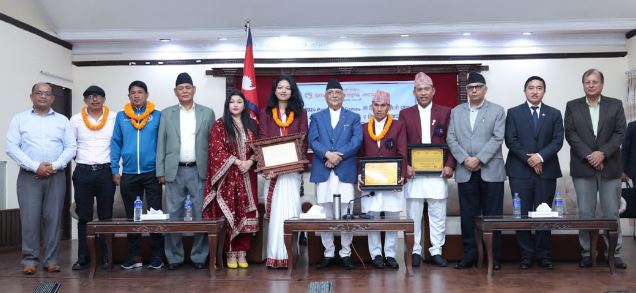 प्रधानमन्त्रीद्वारा पदक विजेता पलेसालाई पुरस्कार प्रदान