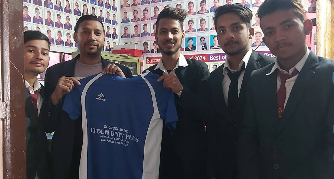 मकवानपुर, २२ मंसिर । मकवानपुर क्याम्पसले आयोजन गर्न लागेको बिबिए, बिबिएम कप सेभेन ए साइड फुटबल प्रतियोगिताका लागि आइटेक युनिभ प्लसले जर्सि सहयोग गरेको छ । हेटौडा–४ स्कुलरोडस्थित रहेको आइटेक युनिभ प्लसले आईतबार (आज) एक कार्यक्रमबीच बिबिएम अन्तिम सेमेस्टरको टिमलाई जर्सी हस्तातरण गरेको हो । जर्सी हस्तान्तरण गर्दै आइटेक...