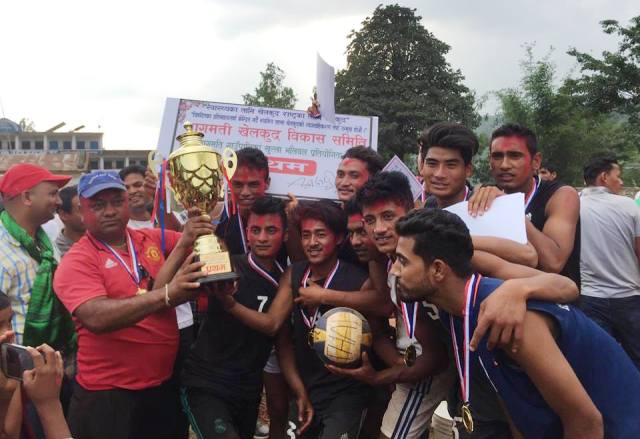 प्रथम बाग्मती गाउँपालिका खुल्ला भलिबल प्रतियोगिताको उपाधि थाहाको पोल्टामा