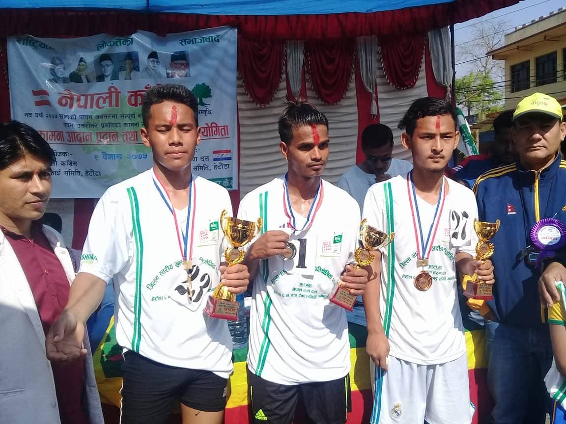 मकवापनुर । नेपाली काँग्रेसको युवा संगठन नेपाल तरुण दल हेटौँडा–६ नम्बर इकाईको आयोजनामा आज खुल्ला दौड प्रतियोगिता सम्पन्न भएको छ । नयाँ वषको उपलक्ष्यमा शुभकामना आदानप्रदानका साथै ५ किलोमिटर दौड प्रतियोगितासमेत भएको थियो । प्रतियोगितामा सविन भ्लोन पहिलो, सन्जिव मिजार दोस्रो र सागर लामा तेस्रो भए । प्रतियोगितामा पहिलो...