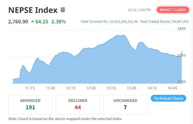 आज नेप्से घट्यो, २१ अर्ब ५१ करोडको कारोबार