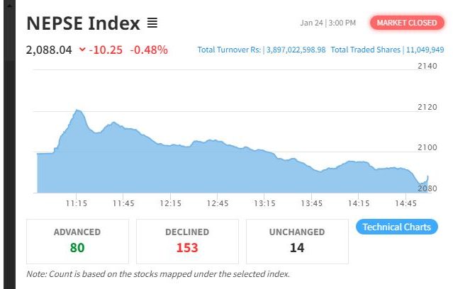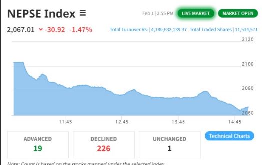 नेप्सेमा झिनो अंकको गिरावट, ४ अर्बमाथिको कारोबार