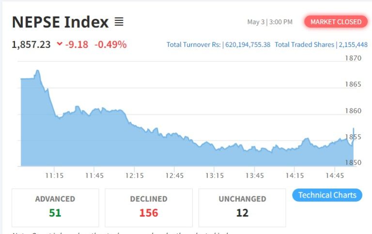 बुधबार ९ अंकले घट्यो नेप्से, ६२ करोड माथिको कारोबार