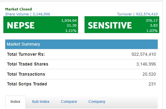 मंगलबार २१ अंकले बढ्यो नेप्से परिसूचक