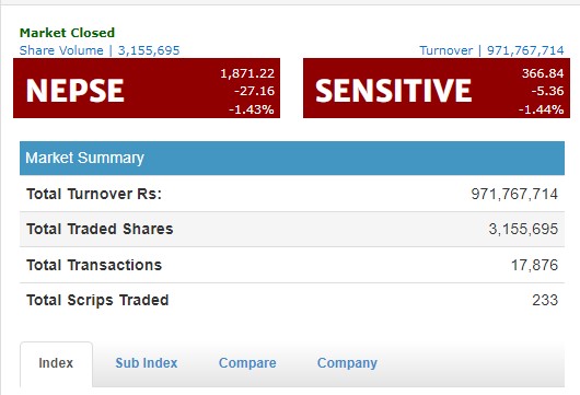 आइतबार शेयर बजारमा ३३ अंकको गिरावट