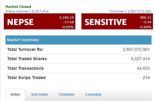 बिहीबार १९ अंकले घट्यो नेप्से परिसूचक
