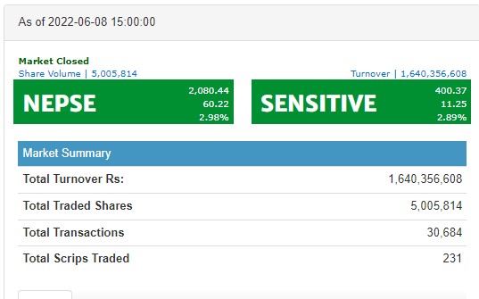 उच्च अंकले घट्यो नेप्से परिसूचक