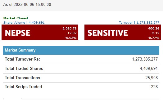 सोमबार १५ अंकले घट्यो नेप्से, ९९ करोडमाथिको कारोबार