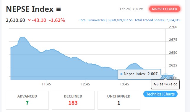 बुधबार दोहोरो अंकले घट्यो नेप्से परिसूचक